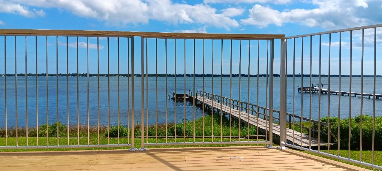 48” Vertical Pickets, Brushed Aluminum with Kiln-dried 2x4 Top Rail