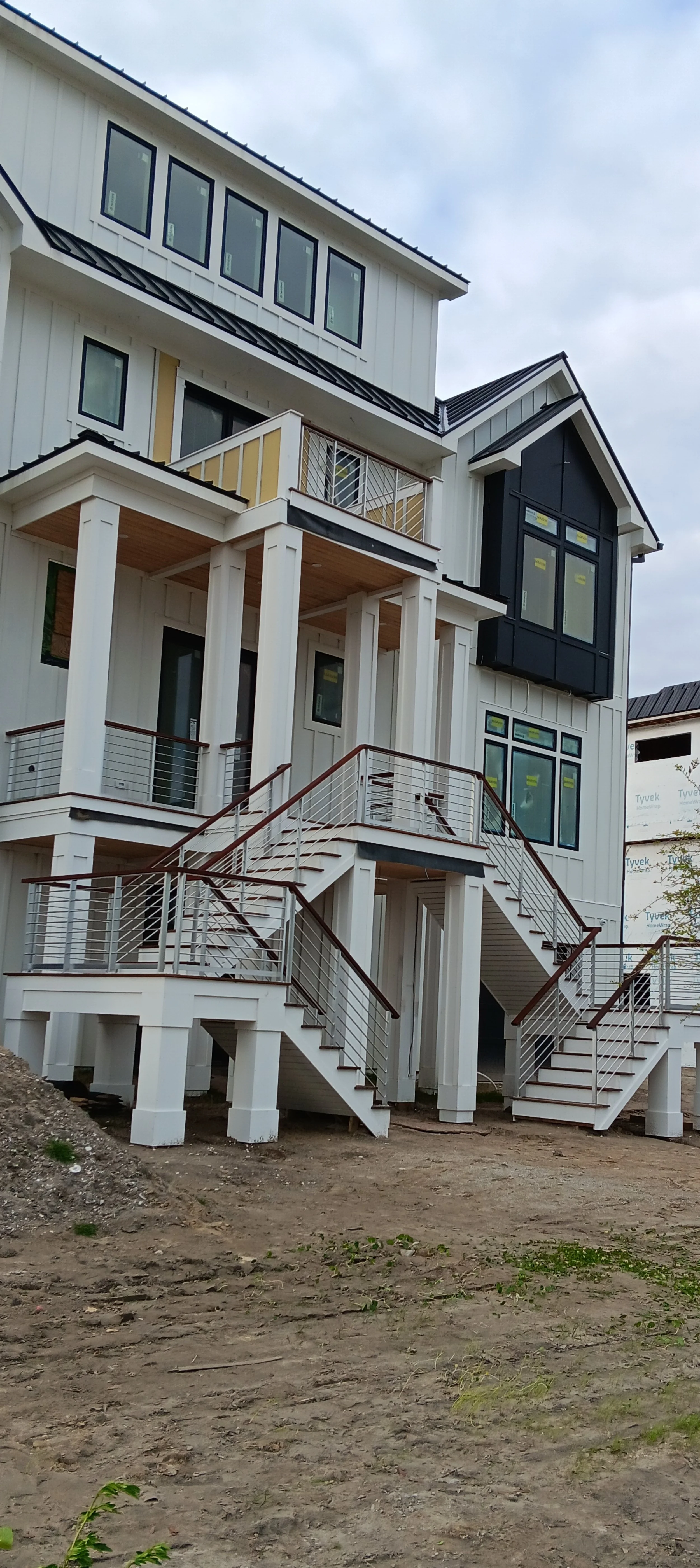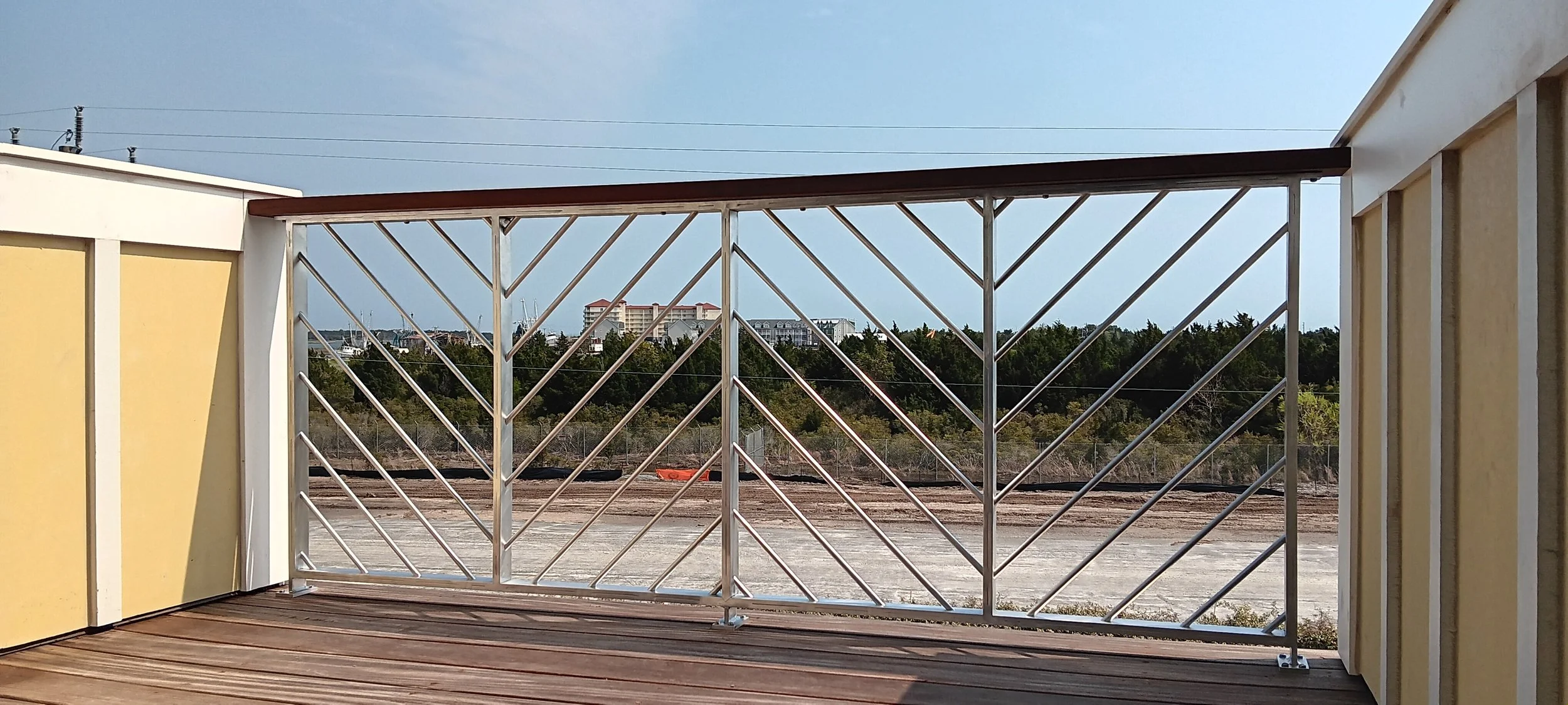 Horizontal Brushed Aluminum bars with 2x4 Ipe Top-rail.